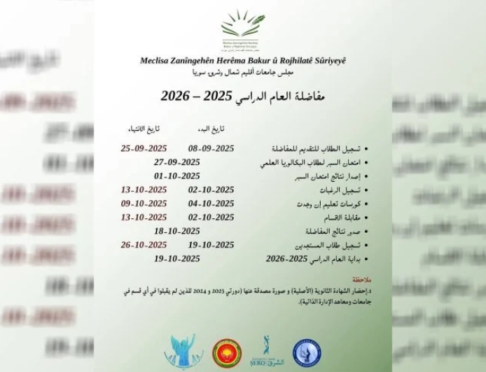 Dema tomarkirina xwendekaran wê ji 8'ê îlonê dest pê bike û di 25'ê îlonê de, wê bi dawî bibe.